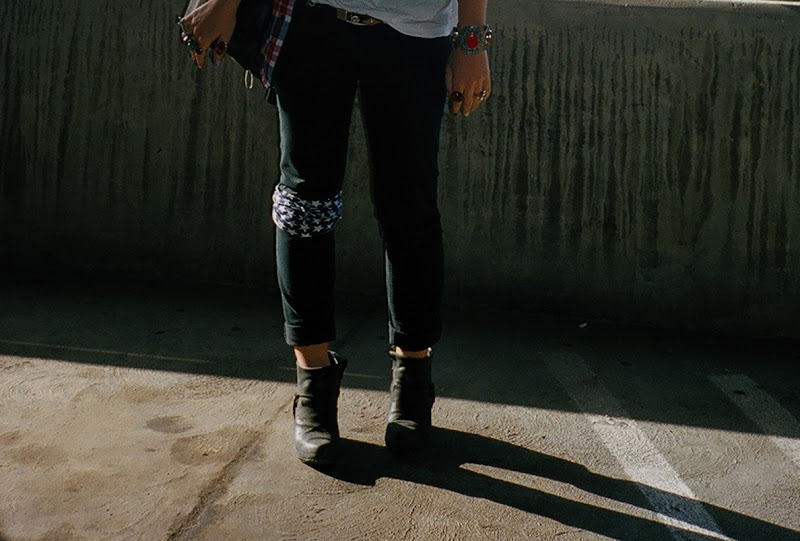 American Apparel plaid shirt · Topshop top · h&m Divided jeans · Vialis booties · Jas M. B. London bag · vintage belt · usa souvenir scarf · cuff form London's Portobello Road flea market rings : Forever 21 · Ibiza flea market · vintage · Zürich flea market (from a typing machine) · Iguana · Barcelona flea market · Cartier Panther ring